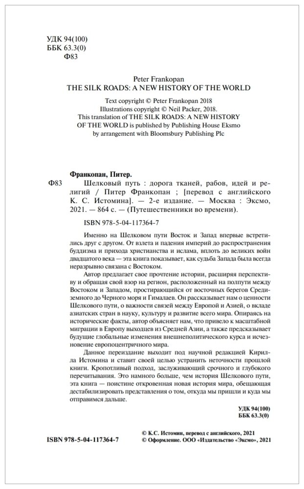 Шелковый путь Дорога тканей рабов идей и религий (европокет) (переиздание) (Франкопан Питер); ООО "Издательство "Эксмо", 2021