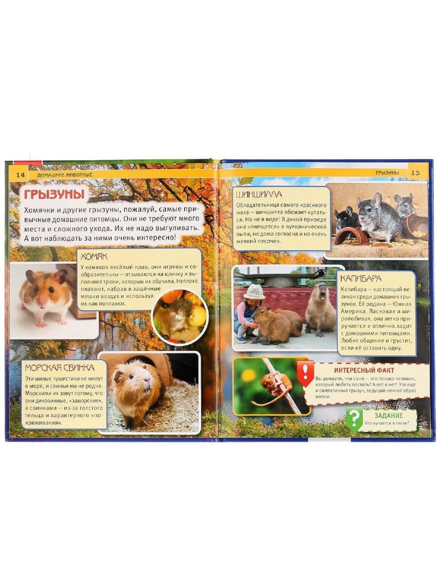 ЭНЦИКЛОПЕДИЯ С РАЗВИВАЮЩИМИ ЗАДАНИЯМИ - для детей от 3-х лет - это новая серия иллюстрированных энциклопедий для чтения и занятий с малышами.Это лучший выбор для родителей и воспитателей, чтобы дать ребенку наиболее важные знания об окружающем мире и о себе:" Удобный формат, самые важные факты и занимательные рассказы, лучшие авторы, вся информация проверена научными консультантами, качественное полиграфическое исполнение по минимальной цене, а также впечатляющий визуальный ряд - более 300 фото и иллюстраций в каждой книге. В оформлении серии использован крупный шрифт и яркие заголовки, что значительно облегчает восприятие сложных и незнакомых тем. В каждой книге есть развивающие задания, что делает общение с книгой интерактивным и надолго займет внимание вашего ребенка.Соответствует ФГОС. Энциклопедия с развивающими заданиями "Домашние животные" - это книга из новой серии иллюстрированных энциклопедий для чтения и занятий с малышами от ТМ "УМка". Книга расскажет о видах животных, которые живут рядом с людьми, об их поведении, об уходе за ними, об их поведении и многом другом. На протяжении всей книги ребёнку будут предлагаться развивающие задания, которые помогут запомнить информацию ещё лучше! - яркие фото. - одобрено педагогами. - проверено научными консультантами... дальше ". - рекомендовано для подготовки к школе.