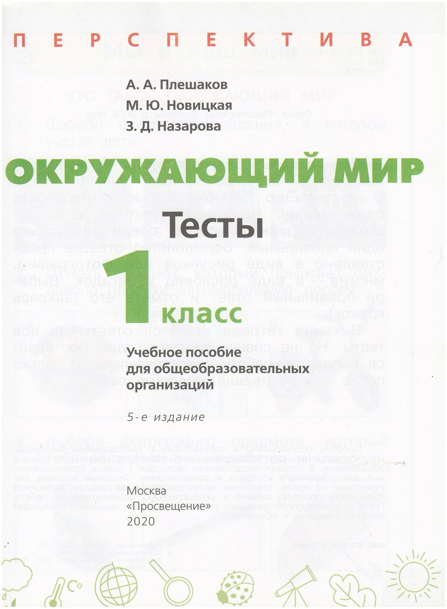 Плешаков. Окружающий мир. Тесты. 1 класс /Перспектива (Плешаков Андрей Анатольевич, Новицкая Марина Юрьевна, Назарова Зоя Дмитриевна); Просвещение, 2020