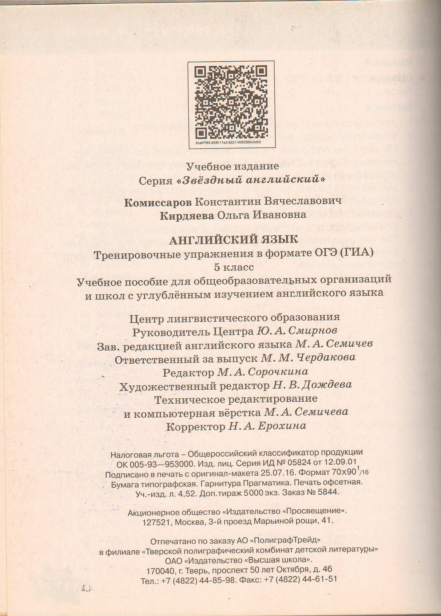 Комиссаров. Английский язык. Тренировочные упражнения в формате ГИА. 5 класс (Константин Вячеславович Комиссаров); Просвещение, 2021