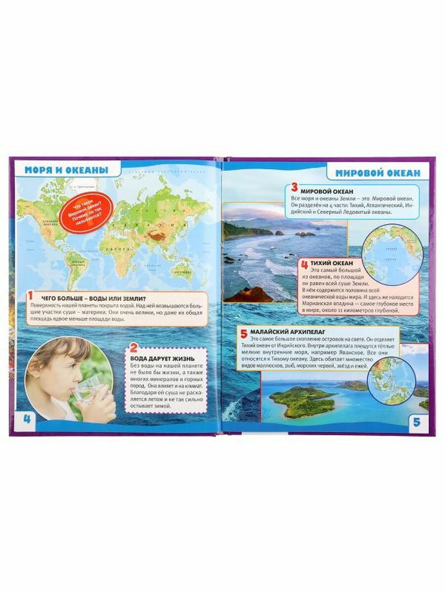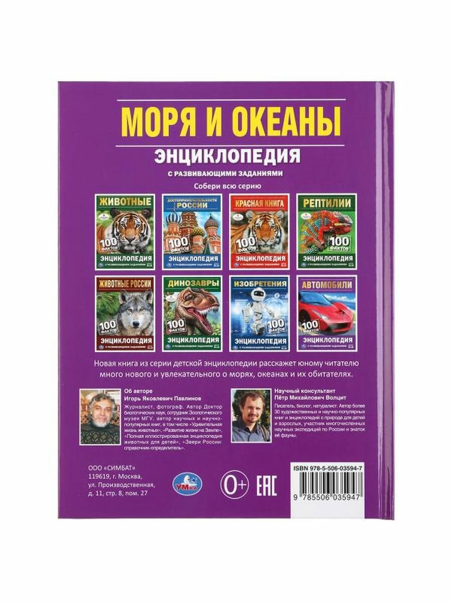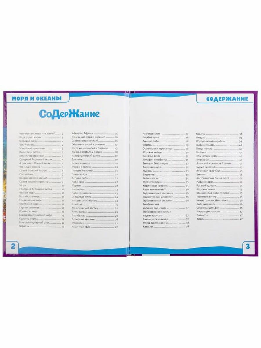 Яркая и красочная энциклопедия из серии детской энциклопедии расскажет юному читателю много нового и увлекательного о морях, океанах и их обитателях. Зрелищные фото и удивительные факты увлекут ребёнка и помогут ему быстро, эффективно и с удовольствием усвоить новую информацию.