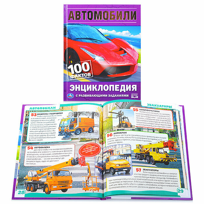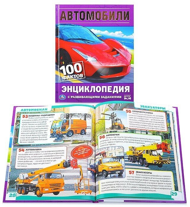 Энциклопедия с развивающими заданиями "Автомобили. 100 фактов" ТМ "УМка" понравится маленьким любознайкам.
