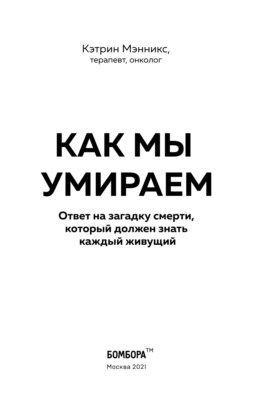 Как мы умираем. Ответ на загадку смерти который должен знать каждый живущий (Кэтрин Мэнникс); Эксмо, БОМБОРА, 2022
