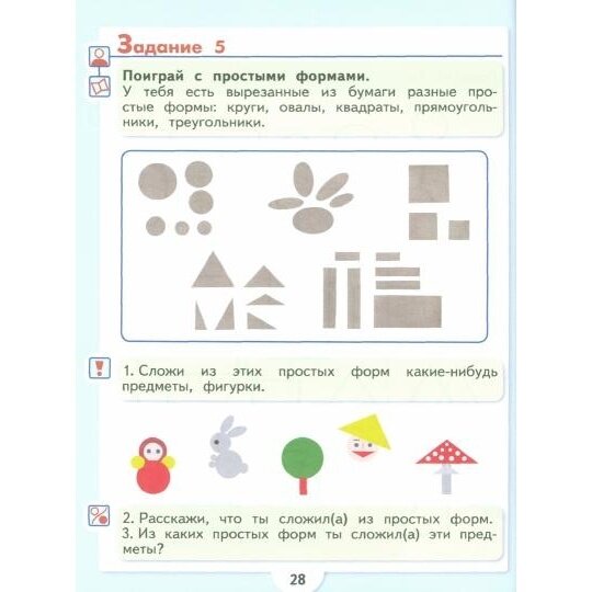 В результате работы по учебнику у детей развивается цветовосприятие и умение изображать увиденное цветными художественными материалами, формируется умение анализировать форму, строение (конструктивные особенности) объекта наблюдения, умение выделять в нём части, определять пропорции и видеть объект целостно, потом изображать его, передавая относительное сходство. На уроках поизобразительному искусству осуществляется пропедевтика обучения композиционной деятельности, проводится работа по восприятию некоторых произведений искусства, сопутствующих теме определённого занятия. Таким образом, в 1 классе у детей формируется база, основа для творческой деятельности: опыт относительно полных и точных представлений о предметном