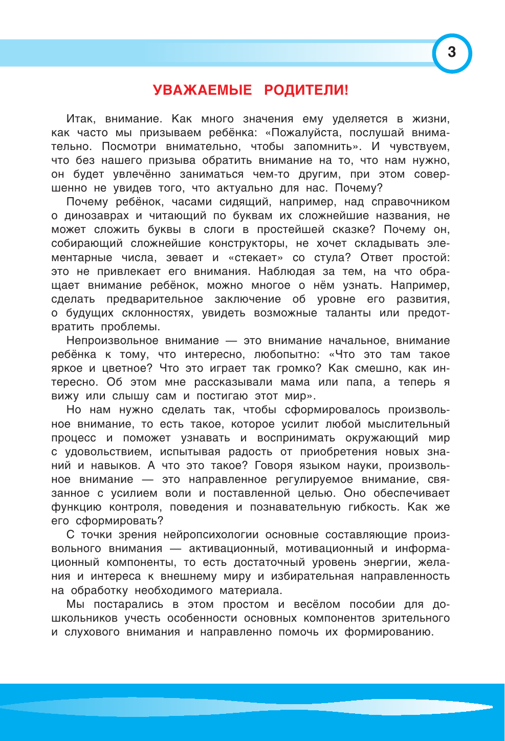 Интересное пособие, много заданий на слуховое и зрительное внимание и все они разные. К каждому заданию даётся инструкция родителю. Сама тетрадь среднего формата и достаточно объемная (64 стр.) Возрастная маркировка не указана, но примерно с 3,5 - 4 лет многие задания уже будут актуальны.