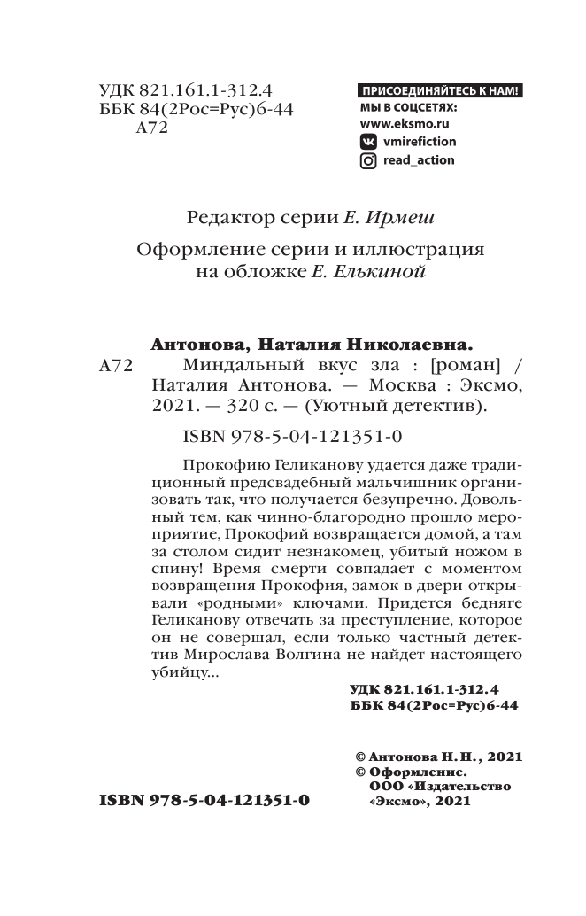 Книга: Миндальный вкус зла (Наталия Антонова); Эксмо, Редакция 1, 2021
