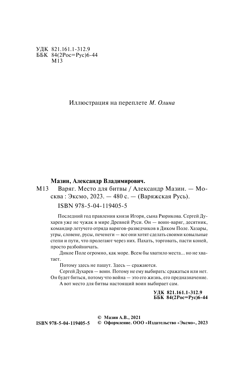 Книга: Варяг. Место для битвы (Мазин Александр Владимирович); ООО "Издательство "Эксмо", 2021