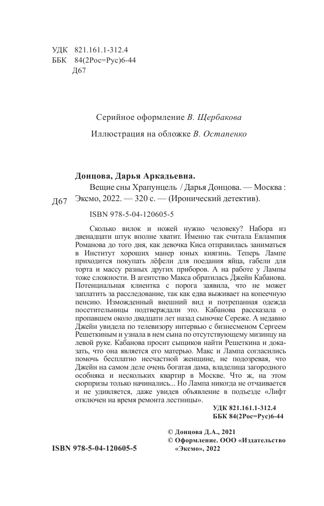 Книга: Вещие сны Храпунцель (Донцова Дарья Аркадьевна); ООО "Издательство "Эксмо", 2021