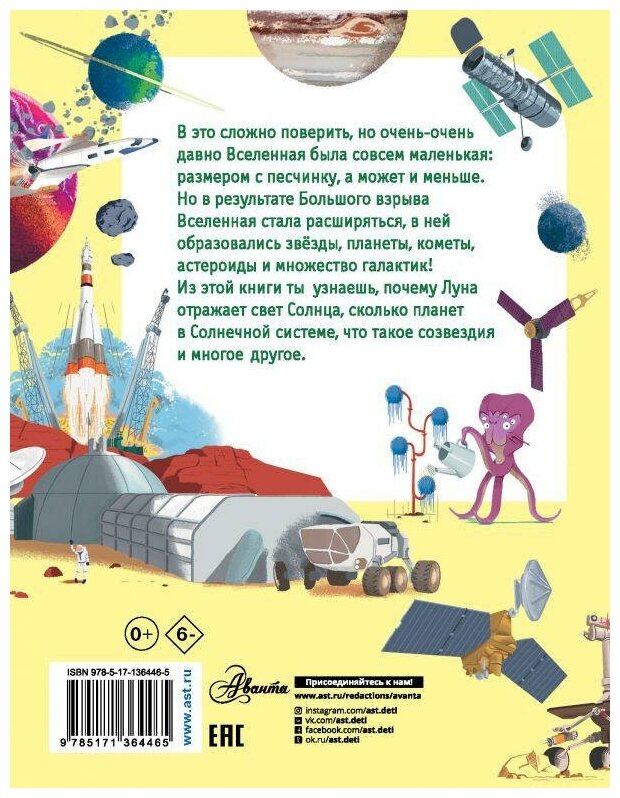 Отличная детская книга для развития кругозора ребёнка, его представлений о Вселенной и космосе, для малышей именно то, что надо. Картинки большие и яркие, текста немного, всё написано очень понятным и простым языком. Книжка не перегружена информацией, которые маленькие дети не смогут понять, всё очень дозированно с учётом возраста.