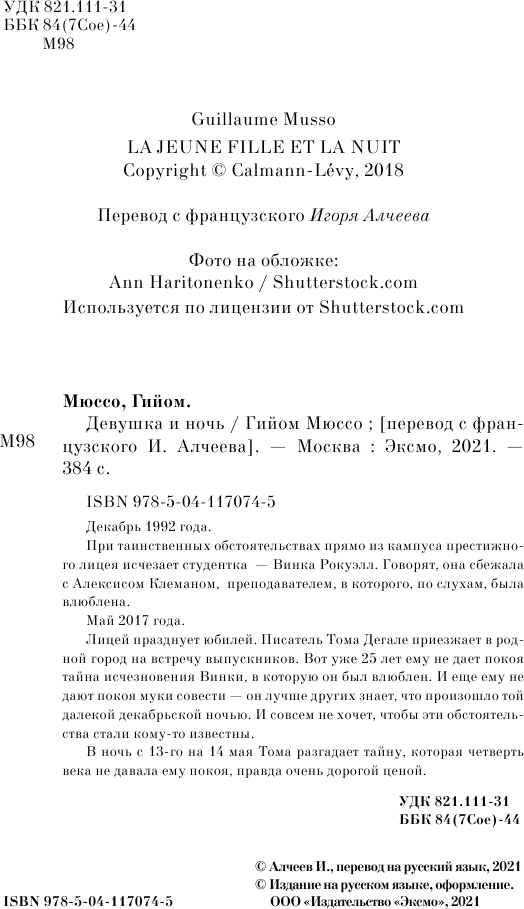 Книга: Девушка и ночь (Гийом Мюссо); Эксмо, Редакция 1, 2021
