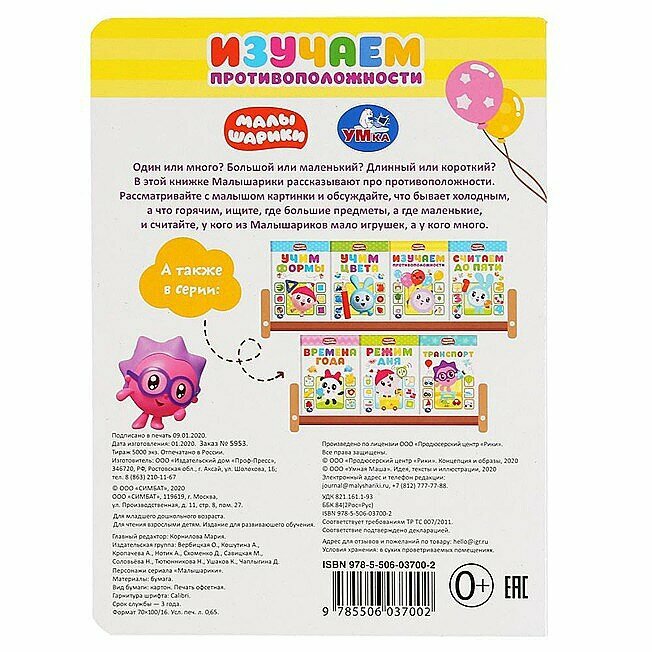 На сегодняшний день товар «Книга: "УМКА". ИЗУЧАЕМ ПРОТИВОПОЛОЖНОСТИ. МАЛЫШАРИКИ А5 ФОРМАТ: 160Х220 ММ. ОБЪЕМ: 8 СТР. в кор.8*10шт (Коллектив авторов); Умка, 2020» можно купить с кешбеком в 1 магазине: Яндекс.Маркет