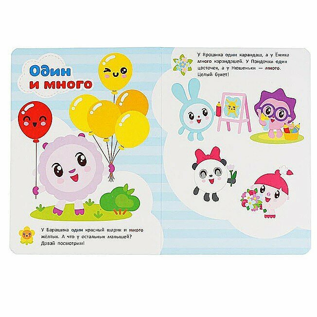 Вместе с неугомонными персонажами любимого мультсериала малышу будет весело и интересно изучать противоположности: длинный-короткий, большой-маленький, один-много и др. Благодаря компактному размеру книжку можно брать с собой в дорогу.