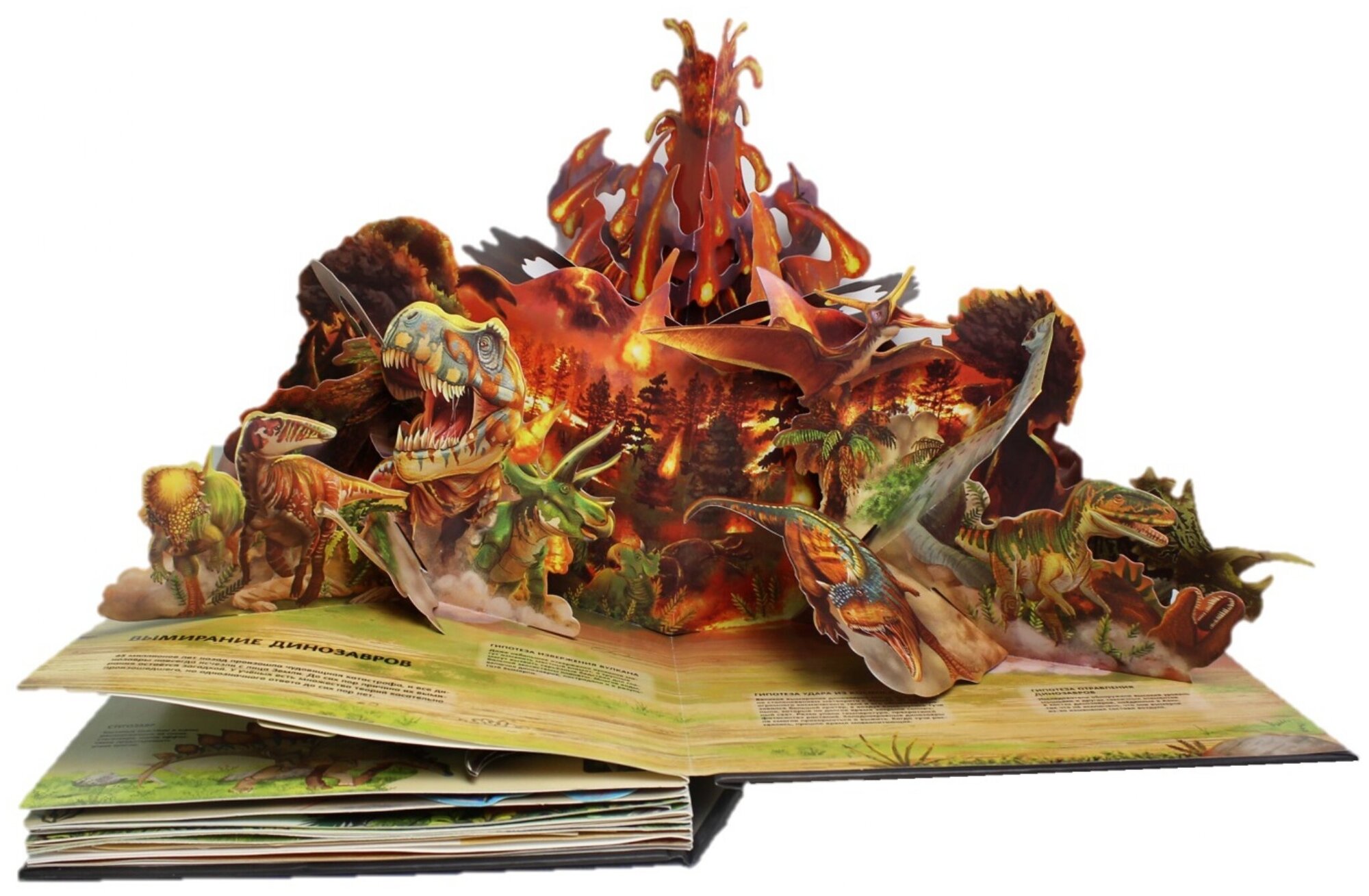 Книгу приобрела для сына(мальчику три года) и, в целом, если судить по реакции ребёнка, ему понравилось. Оформление довольно необычное, так как внутри разворота есть объёмные фигуры динозавров, которые можно двигать внутри специальных окошек. Текст написан доступным языком для ребёнка, а все это дополняют прекрасные иллюстрации от хороших художников. Рекомендую, если вашему ребёнку 3-5 годика.