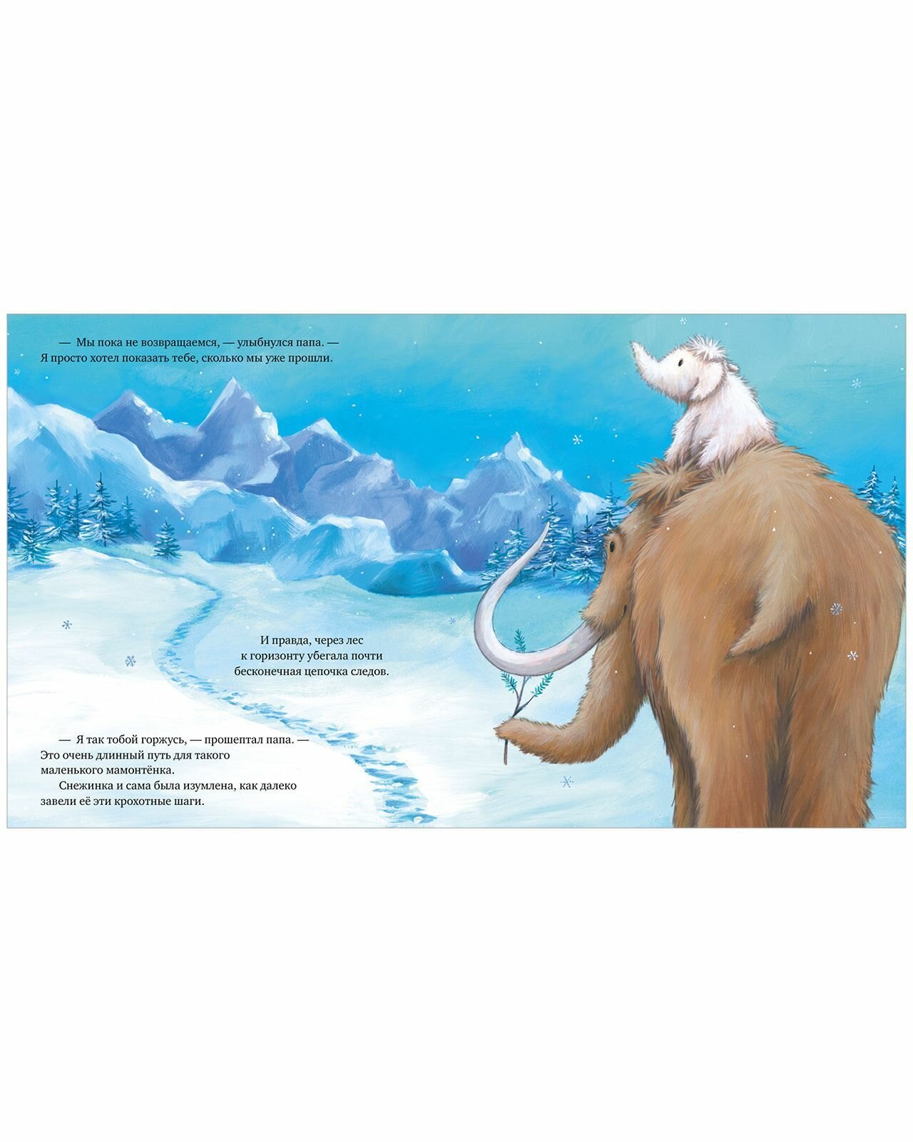 Эта история, рассказанная волшебным, понятным малышу языком, познакомит вас с любознательным мамонтенком Снежинкой. Снежинка хочет быть такой же сильной и большой, как мама и папа. Ей просто не терпится стать взрослой и самой расчищать снежные завалы и пускать фонтаны из хобота. Увы, она пока не умеет делать все то, что умеют взрослые. Чтобы утешить дочку и придать ей веры в свои силы, папа мамонт решает показать Снежинке, что он тоже был маленьким.