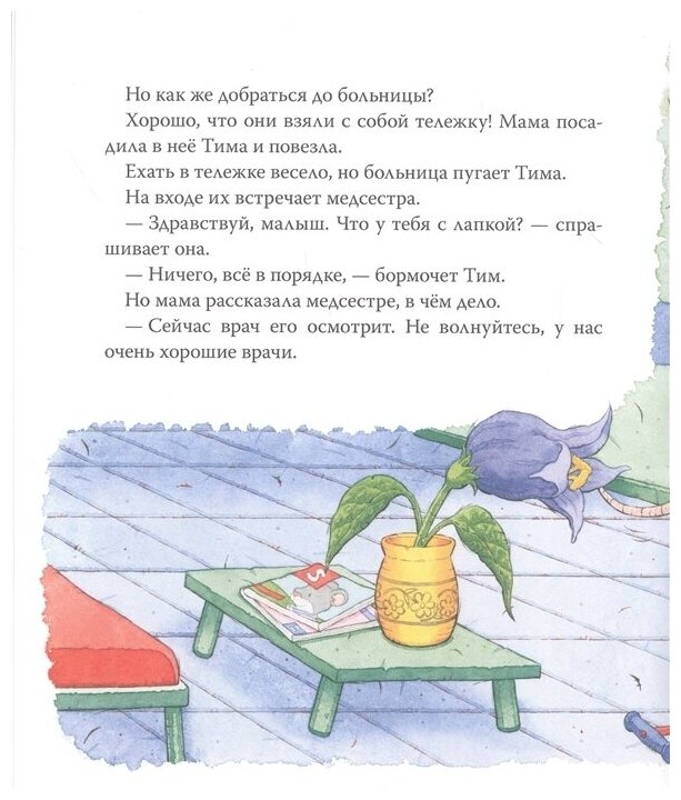 Отличные книги про жизнь и приключения маленького мышонка Тима! Ребёнок с большим удовольствием слушает всю серию книг! Мне, как маме очень понравился стиль и простота изложения текста. Ребёнок понимает каждое слово и даже знает некоторые серии наизусть (нам 3,5 г.). Этот смешной и обонятельный мышонок помогает деткам понимать свои чувства, признавать свои ошибки, учит общаться со сверстниками, делиться своими чувствами. Благодаря что книга написана простым языком, ребёнок сразу понимает суть. Книги из серии первое время покупали сами, теперь ребёнок выбирает то что он хочет, что ему близко на данный момент. В этот раз выбрал книгу про то как Тим боится идти к врачу. Нам понравилась!