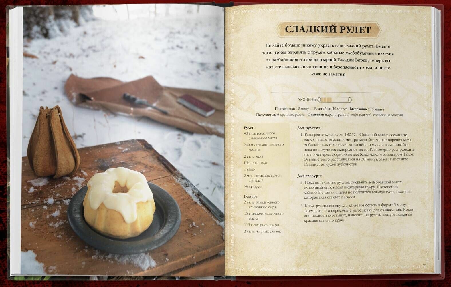 Отведайте легендарный сладкий рулет, приготовьте тушеные ребрышки с полбой (особенно полезно при простреленном колене) и мед Хоннинга. Впрочем, если вы поклонник "Черного вереcка", то и для вас есть рецепт.