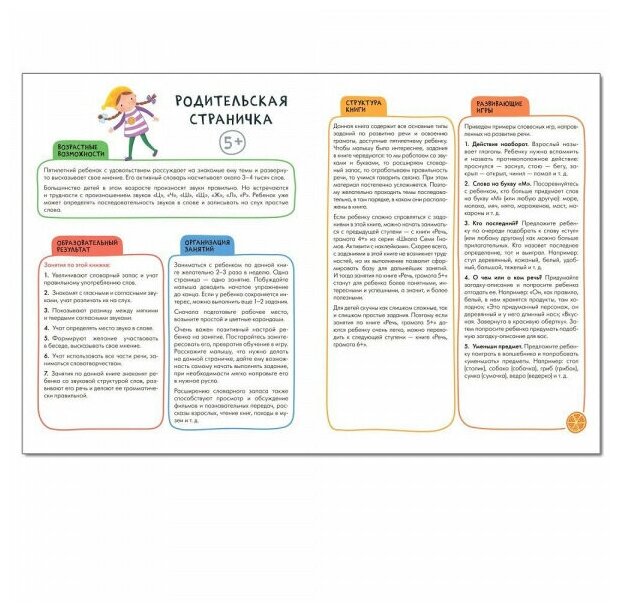 Вместе с гномиком Долькой ребенок проработает ключевые навыки, решая разнообразные речевые и грамматические задачки. Задания расположены по мере усложнения, что делает процесс обучения еще более полезным