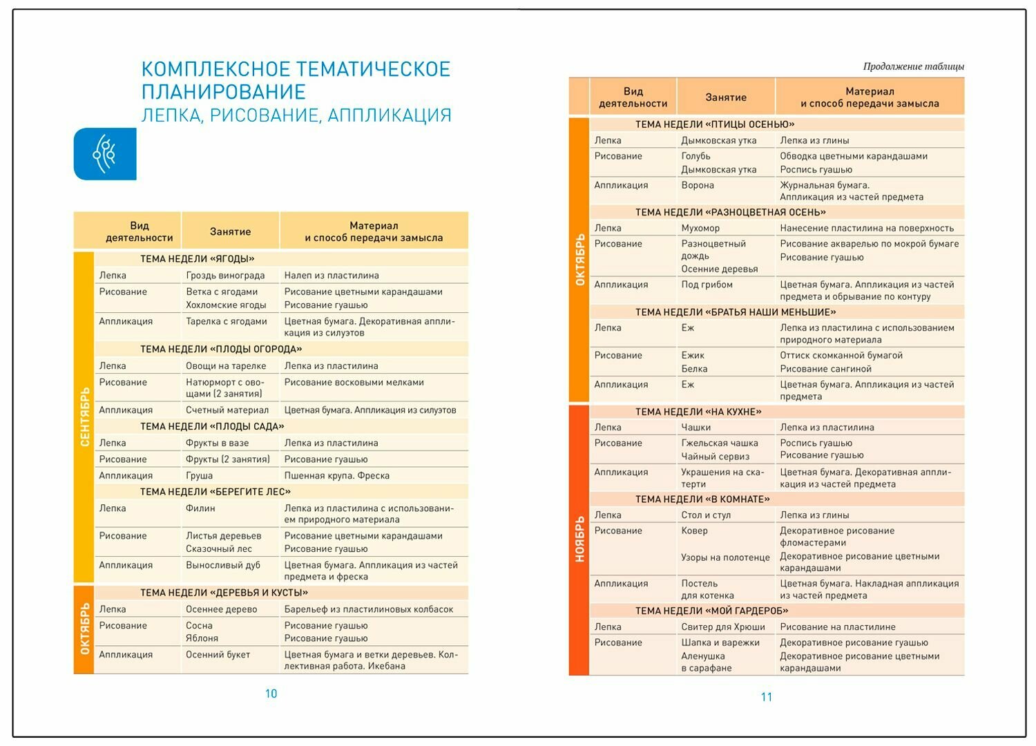 • тематическое и комплексное планирование;
