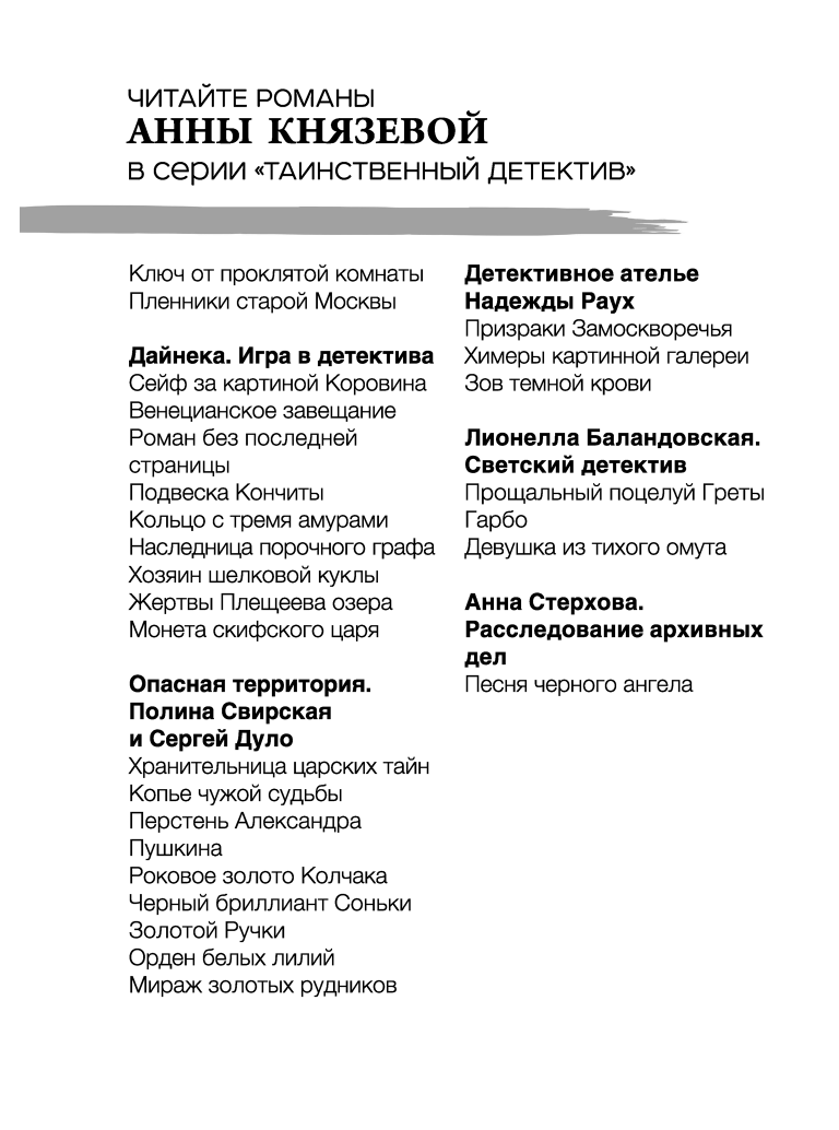 | Серия | Таинственный детектив Анны Князевой |