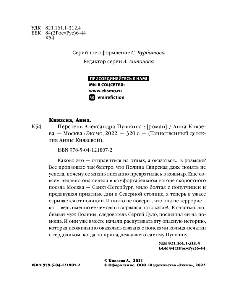 Перстень Александра Пушкина (Анна Князева); Эксмо, Редакция 1, 2022