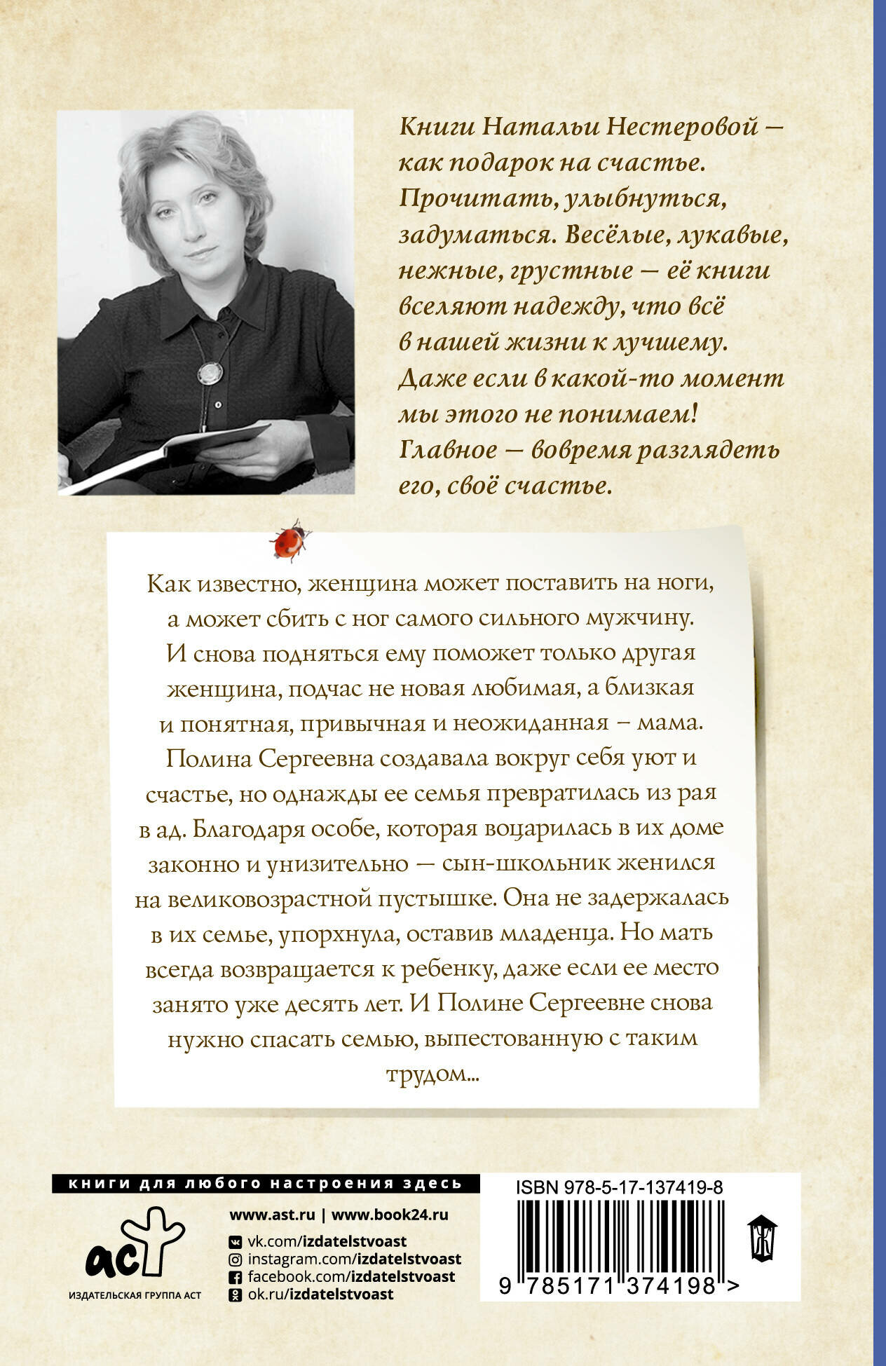 Влюбилась в писателя с первой книги, не перестаю восхищаться талантом и неизбитым сюжетом. Все герои, как живые, сюжеты жизненные. В основе сюжета взаимоотношения, женщины и мужчины, матери и сына. Читается на одном дыхании, словно про своих знакомых, такими родными становятся герои во время чтения. Рекомендую поклонникам писателя Натальи.
