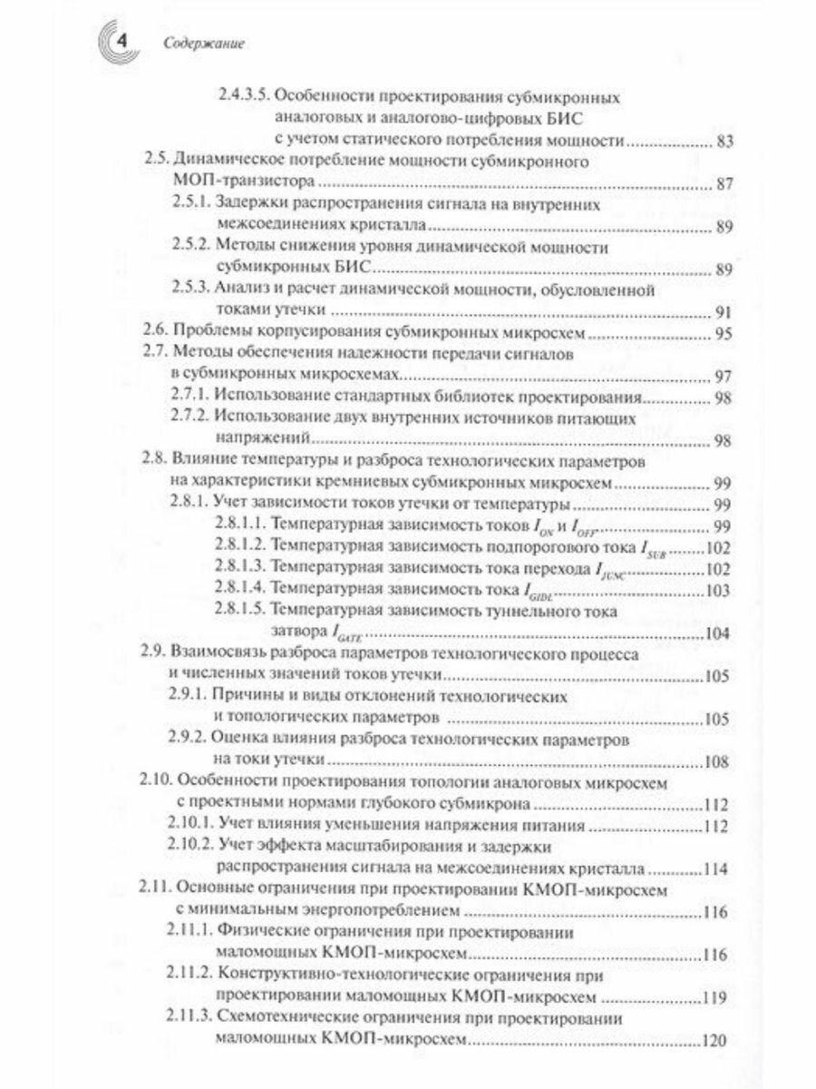 В объеме 14 глав одной книги детально и последовательно рассмотрен весь комплекс взаимосвязанных теоретических и практических аспектов сквозного проектирования и организации производства кремниевых субмикронных микросхем: теоретические основы работы полевых и биполярных транзисторов, методы и особенности конструктивно-схематического проектирования, базовые схемотехнические и системотехнические решения биполярных, КМОП-, БиКМОП- и КНИ-микросхем, методы и средства повышения их радиационной стойкости, стандартные библиотеки проектирования и типовые маршруты проектирования.