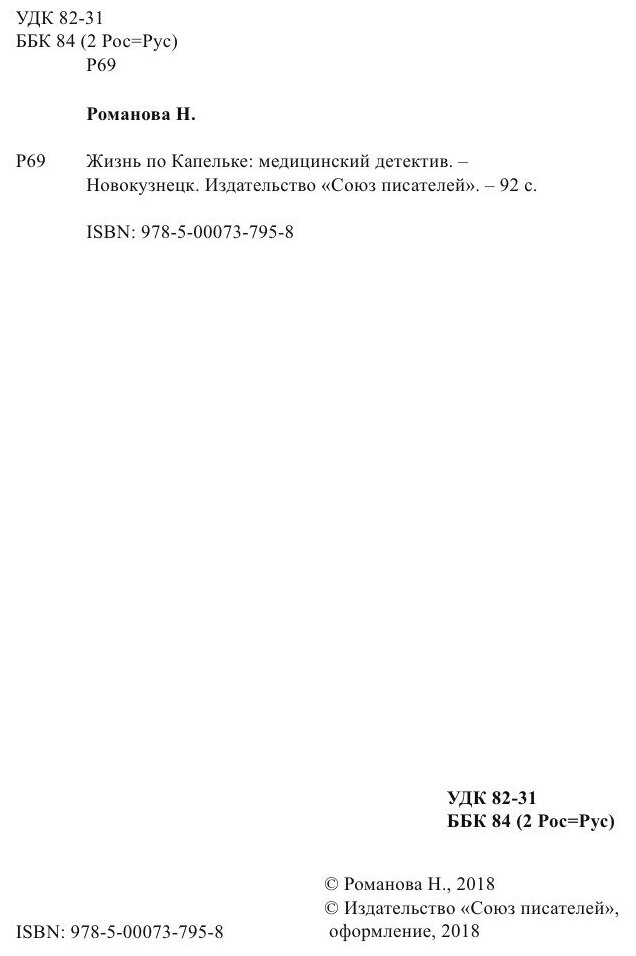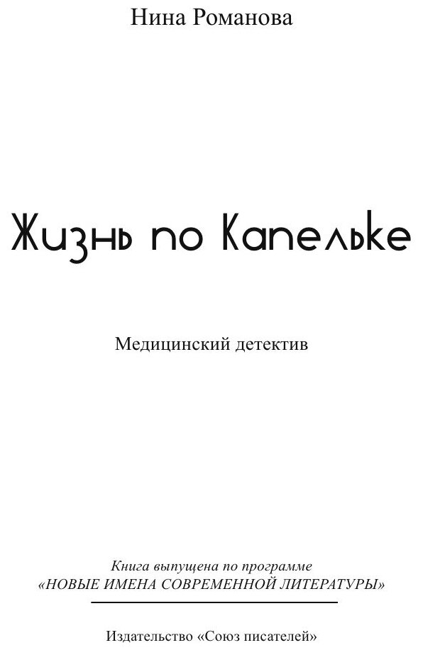 Жизнь по капельке. Медицинский детектив (Нина Лето Романова); «Издательство «Союз писателей», 2018