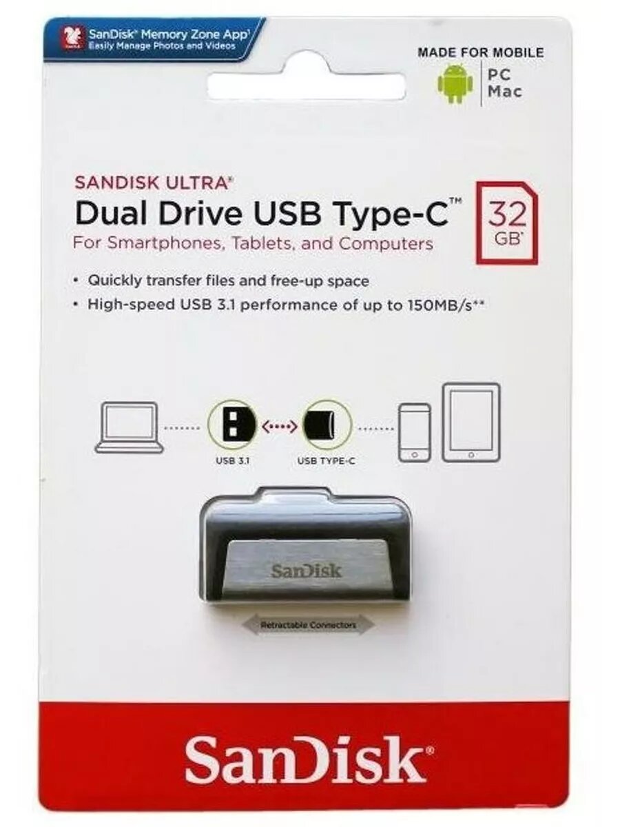 Можно без труда освободить место на смартфоне или быстро передавать файлы между устройствами благодаря высокой скорости USB 3.1, достигающей 150 МБ/с. Благодаря наличию двустороннего разъема USB типа C и традиционного разъема USB флеш-накопитель SanDisk Ultra Dual типа C дает возможность быстро и удобно перемещать файлы между смартфонами, планшетами и компьютерами.