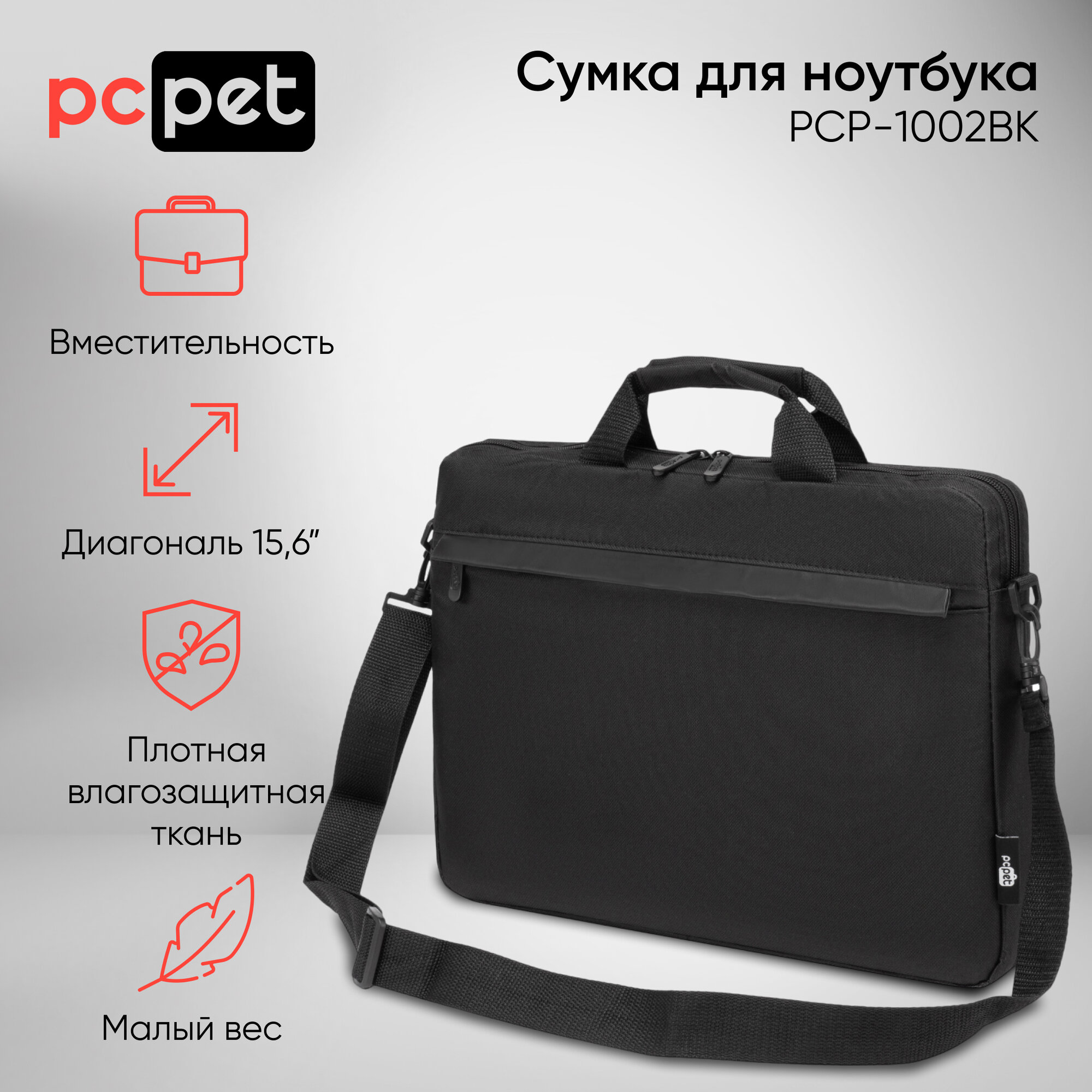 Сумка для ноутбука PC Pet HQ Classic черный, полиэстер, рекомендуемая диагональ 15.6", съемный ремень, карманов внешних: 1шт (PCP-1002BK)