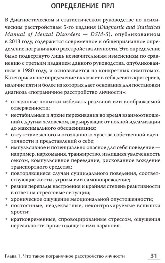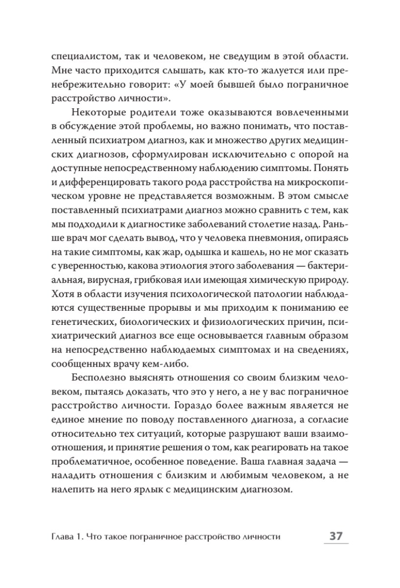 Я впервые за свою жизнь сталкиваюсь с таким термином, как пограничное расстройство личности, точно так же, изучив симптомы расстройство поняла, что и не встречала таких людей. Однако моя любознательность в сфере психологии и психологии в отношениях «съела» эту книгу полностью.