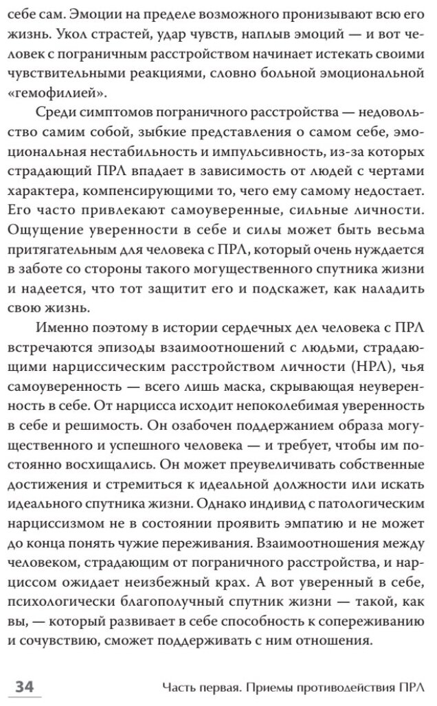 отличное пособие по общению с людьми с ПРЛ. Порадовало то, что есть техники и советы (которые хоть, во многом, и перекочевали из «Я ненавижу тебя, только не бросай меня», но все же здесь выглядят дополненными и доработанными) не только по сохранению отношений, но и по выходу из токсичных. Разочаровал перевод, в котором встречалась гомофобная лексика, но, в принципе, материал книги он не портит.