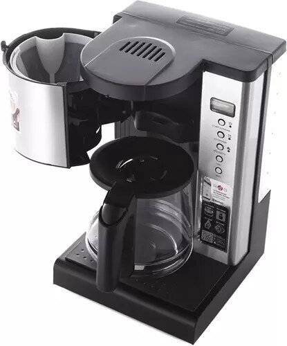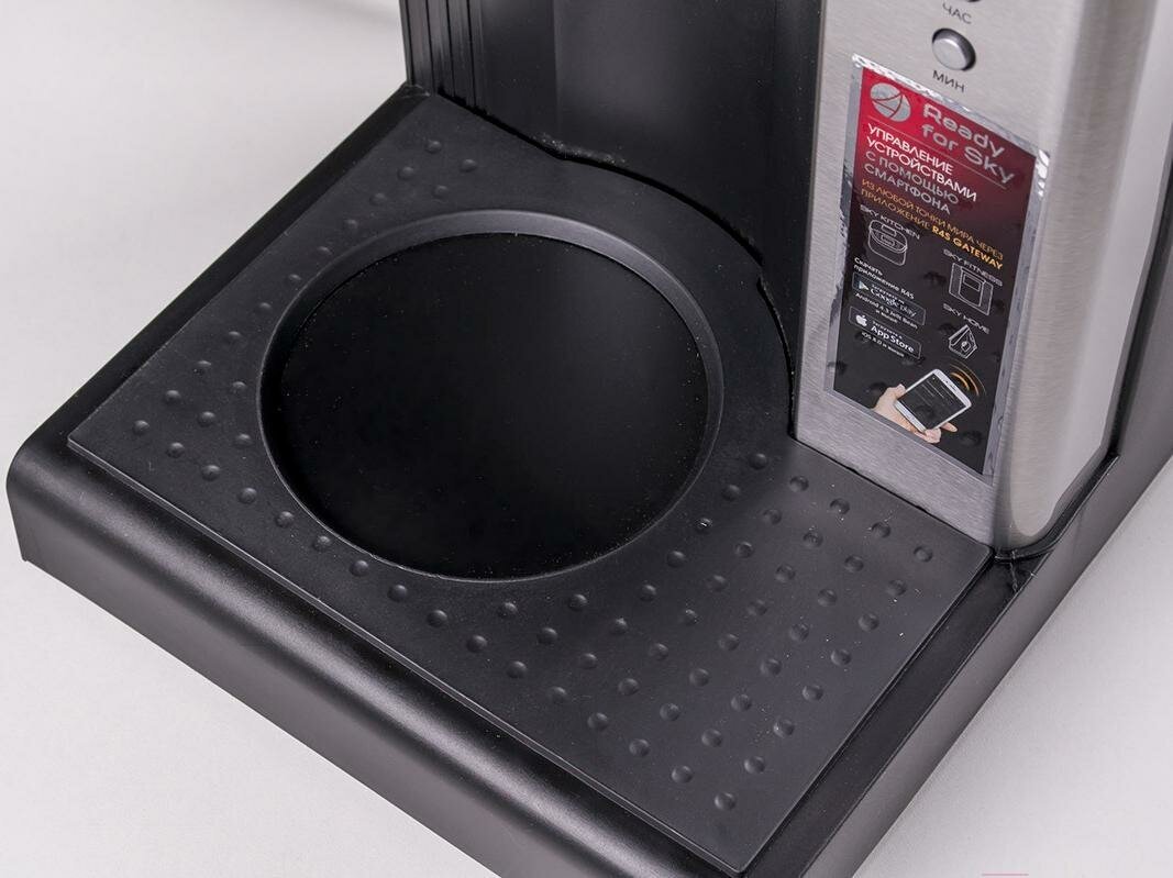 SkyCoffee M1509S имеет корпус из нержавеющей стали и пластика, а также кувшин из термостойкого стекла. К достоинствам аппарата следует отнести и наличие полезной функции «Антикапля», предотвращающей малейшую потерю ценного ароматного напитка, появление пятен на рабочей поверхности и прочие мелкие неприятности. Вы сможете полностью сконцентрироваться на незабываемом вкусе своего любимого кофе!