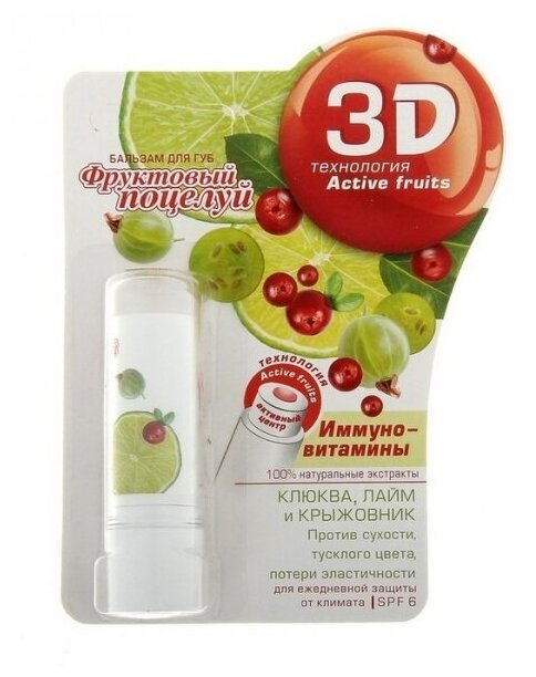 | Полное наименование | Фруктовый поцелуй Бальзам для губ Multistick Иммуновитамины, 4,3 г |