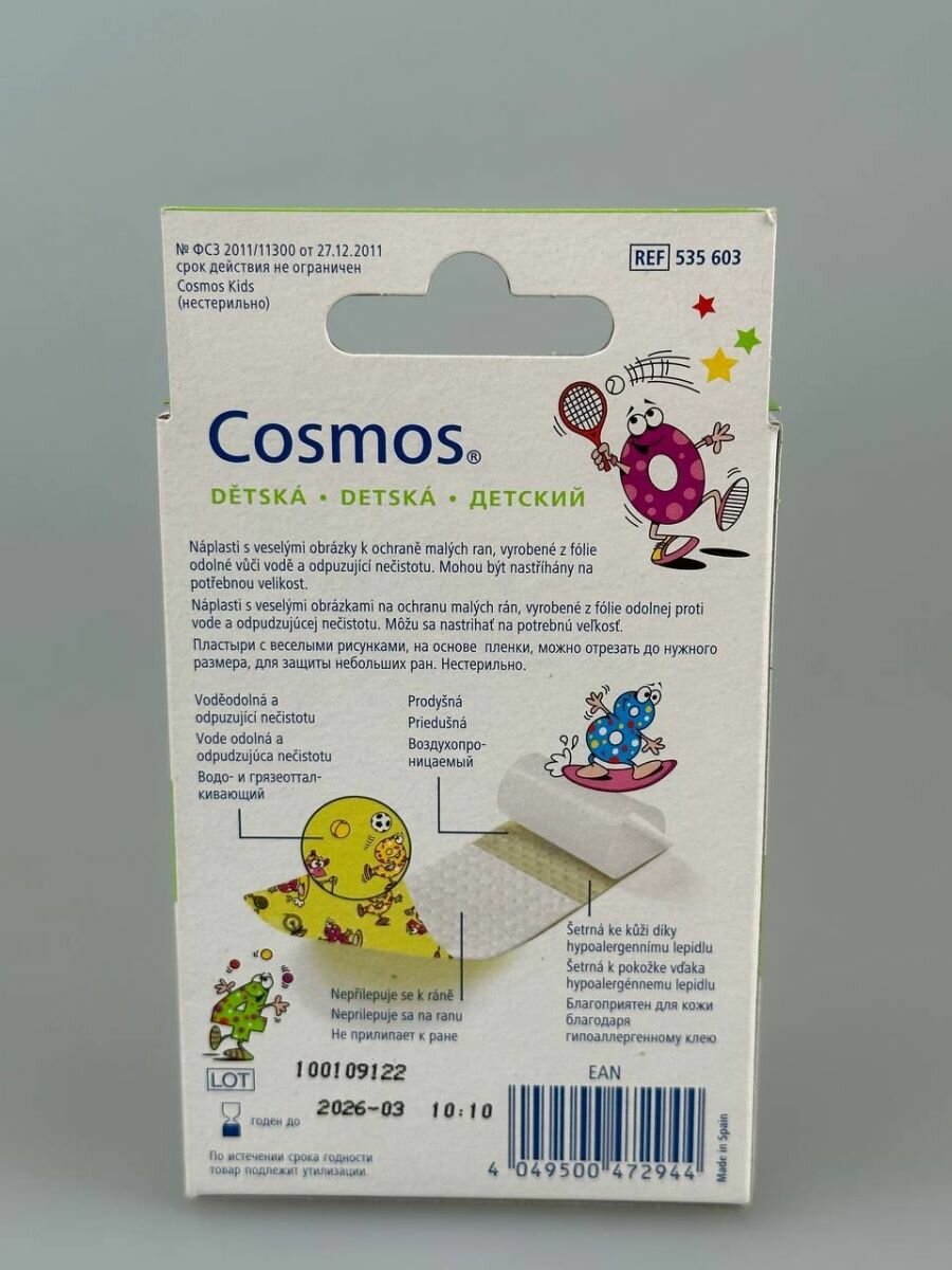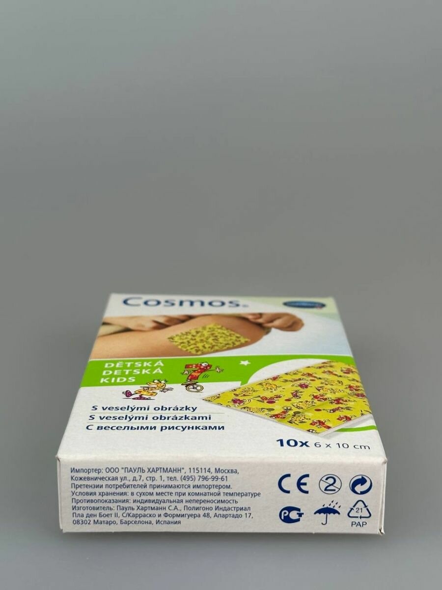 Пластыри Hartmann Cosmos Kids изготовлены из эластичной перфорированной пленки с гипоаллергенным клеем. Воздухопроницаемые, водо- и грязеотталкивающие. Не приклеиваются к ране, не раздражают кожу, ускоряют процесс заживления раны.