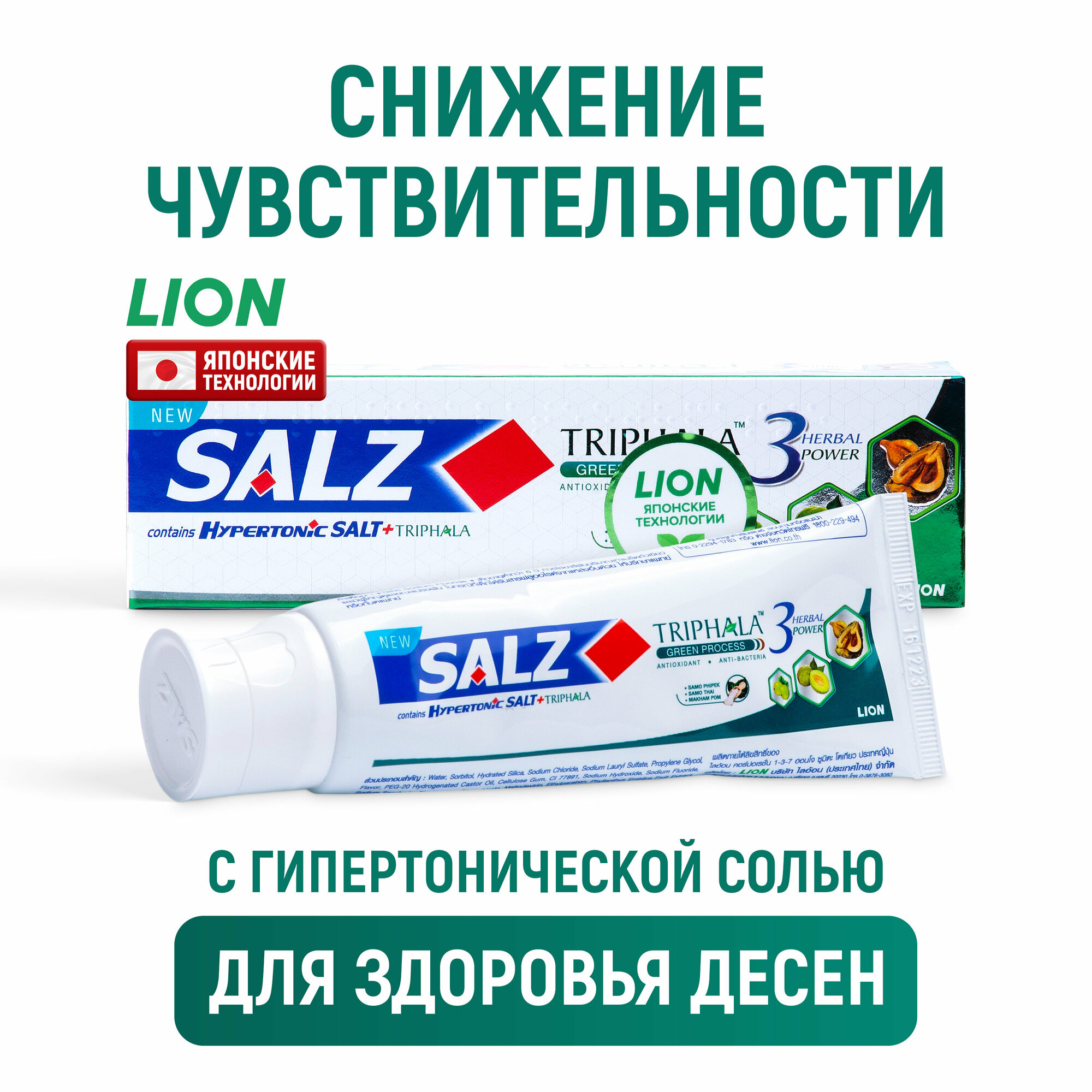 Паста зубная с гипертонической солью и трифалой LION Salz Herbal 90г LION CORPORATILION CORPORATION (THAILAND) LIMITED (1433524)