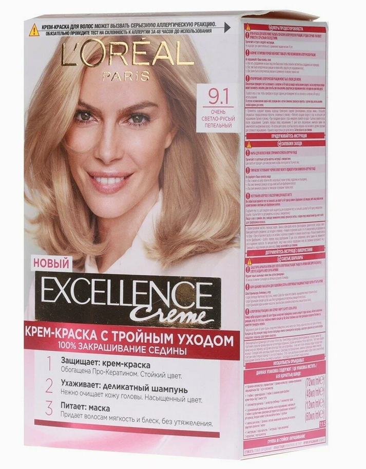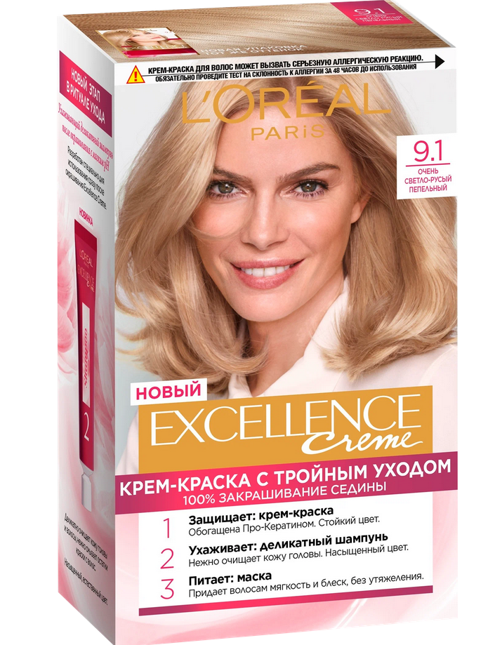 Краска для волос excellence тон 9.1 очень светло-русый пепельный Loreal Н.В. Л'Ореаль Либрамон С.А. (1091875)