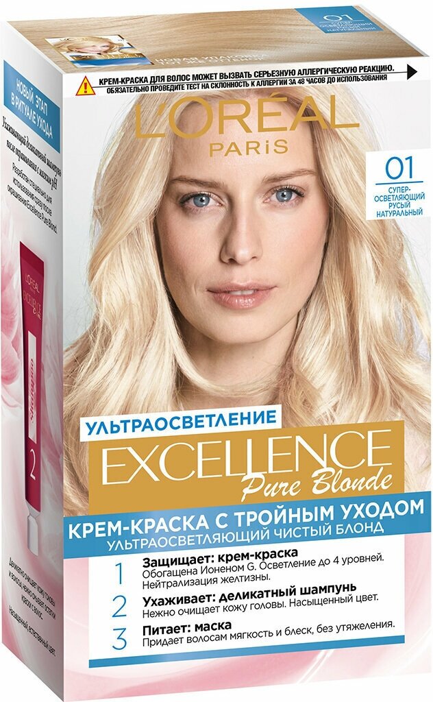 Краска для волос excellence тон 01 супер-осветляющий русый натуральный Loreal Н.В. Л'Ореаль Либрамон С.А. (1091875)