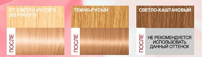 | Состав | aqua / water; cetearyl alcohol; propylene glycol; deceth-3; laureth-12; ammonium hydroxide; oleth-30; hexadimethrine chloride; lauric acid; glycol distearate; polyquaternium-22; ethanolamine; silica dimethyl silylate [nano] / silica dimethyl silylate; ci 77891 / titanium dioxide; m-aminophenol; ascorbic acid; sodium metabisulfite; hydroxybenzomorpholine; dimethicone; proline; p-phenylenediamine; carbomer; threonine; resorcinol; edta; parfum / fragrance.aqua / water; hydrogen peroxide; cetearyl alcohol; sodium salicylate; trideceth-2 carboxamide mea; phosphoric acid; ceteareth-25; tetrasodium etidronate; tetrasodium pyrophosphate; glycerin. aqua / water; sodium laureth sulfate; cocamidopropyl betaine; dimethicone; sodium chloride; parfum / fragrance; ci 77891 / titanium dioxide; guar hydroxypropyltrimonium chloride; mica; coco-betaine; sodium benzoate; sodium hydroxide; phenoxyethanol; steareth-6; acetic acid; peg-100 stearate; peg-45m; trideceth-10; trideceth-3; salicylic acid; fumaric acid; linalool; benzyl alcohol; amodimethicone; isoeugenol; carbomer; citric acid; bht; hexylene glycol; hexyl cinnamal; glycerin; glycol distearate. |