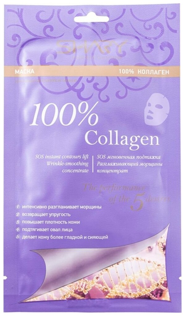 Коллаген – основной структурный белок кожи, поддерживающий ее упругость и эластичность. Маска "100% коллаген" разработана специально для стимулирования внутренних процессов, отвечающих за выработку в коже собственного коллагена, благодаря чему восстанавливается её тургор, интенсивно разглаживаются морщины, контуры лица подтягиваются и приобретают очерченный вид. Инновационная формула замедляет процессы старения в клетках, поддерживая тонус и плотность кожи. С каждым применением маски Ваша кожа становится более эластичной и гладкой.