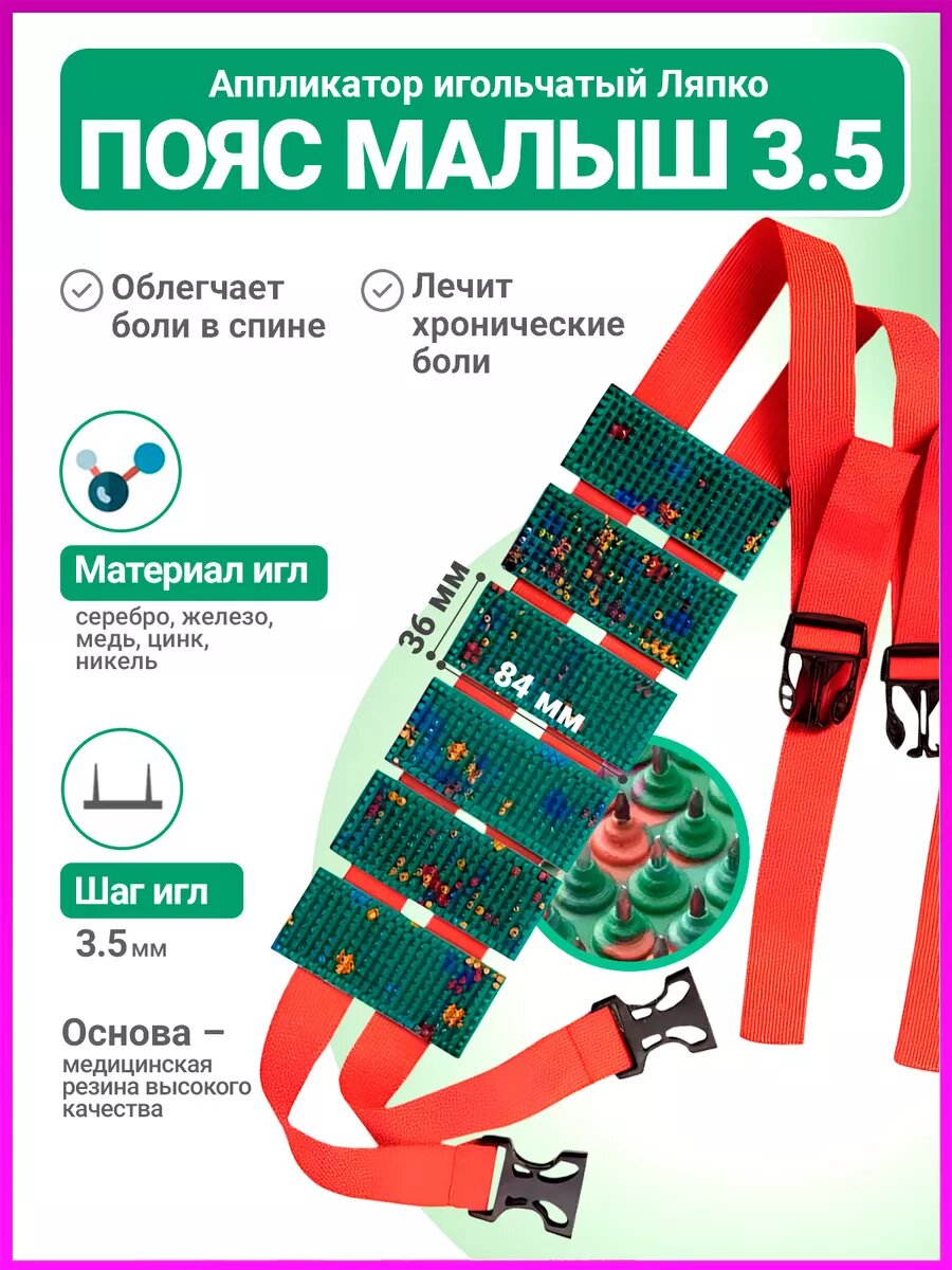 На сегодняшний день товар «Аппликатор Ляпко плоский АЛП "Пояс Малыш игольчатый" с шагом 35мм ООО "Брама" RU (1395494)» можно купить с кешбеком в 1 магазине: Яндекс.Маркет