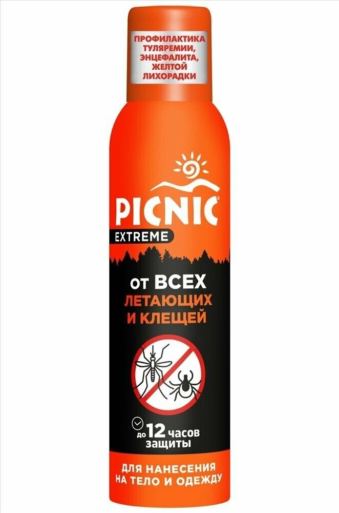 Аэрозоль от всех видов летающих кровососущих насекомых и клещей Picnic/Пикник Экстрем 150мл ООО Аэрозоль Новомосковск (573357)