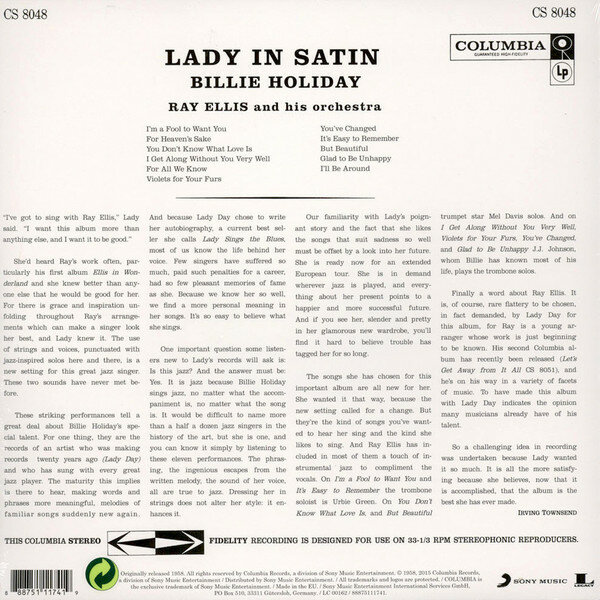 Billie Holiday Lady In Satin Виниловая пластинка Sony Music