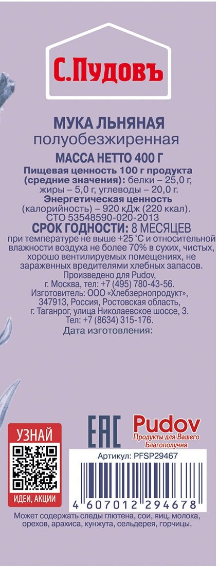 Сервис сравнения цен СкидкаГИД предлагает сравнить цены на товар «Мука С.Пудовъ Льняная 400г»