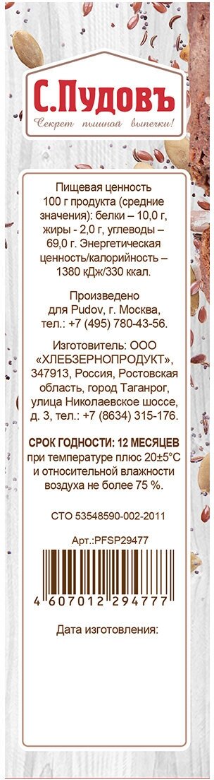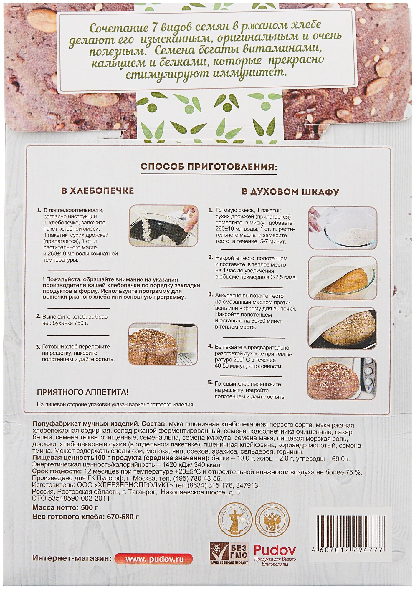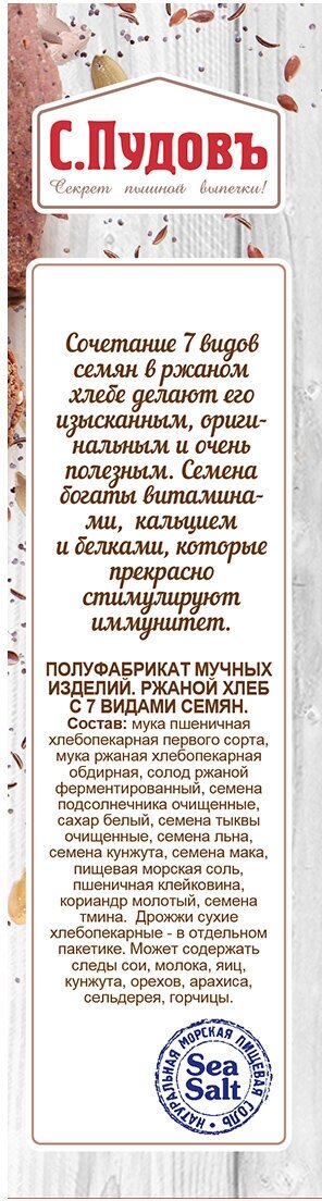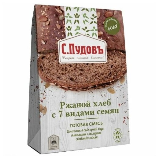 Смесь для выпечки Ржаной хлеб с 7 видами семян С.Пудовъ поможет вам легко и просто приготовить ароматный, вкусный и полезный хлеб.