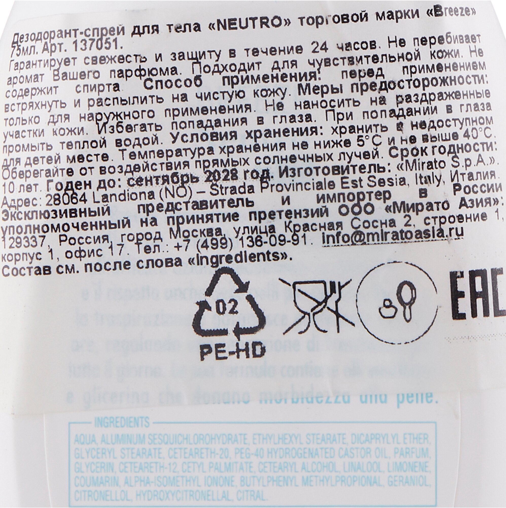 Дезодорант Breeze Neutro 75мл