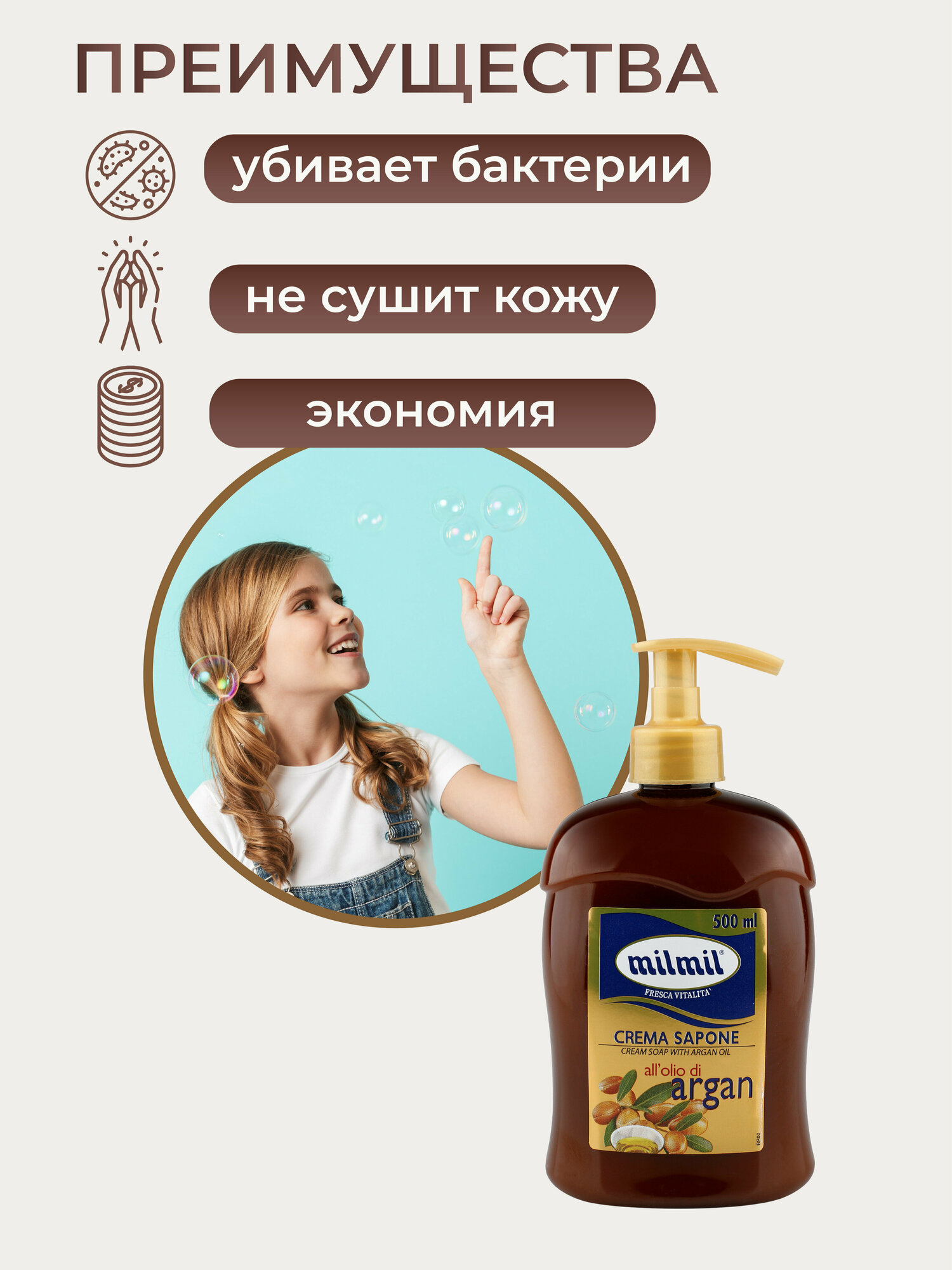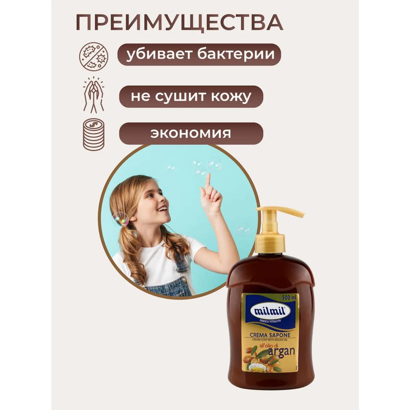 Мыло-крем MilMil Argan 500мл