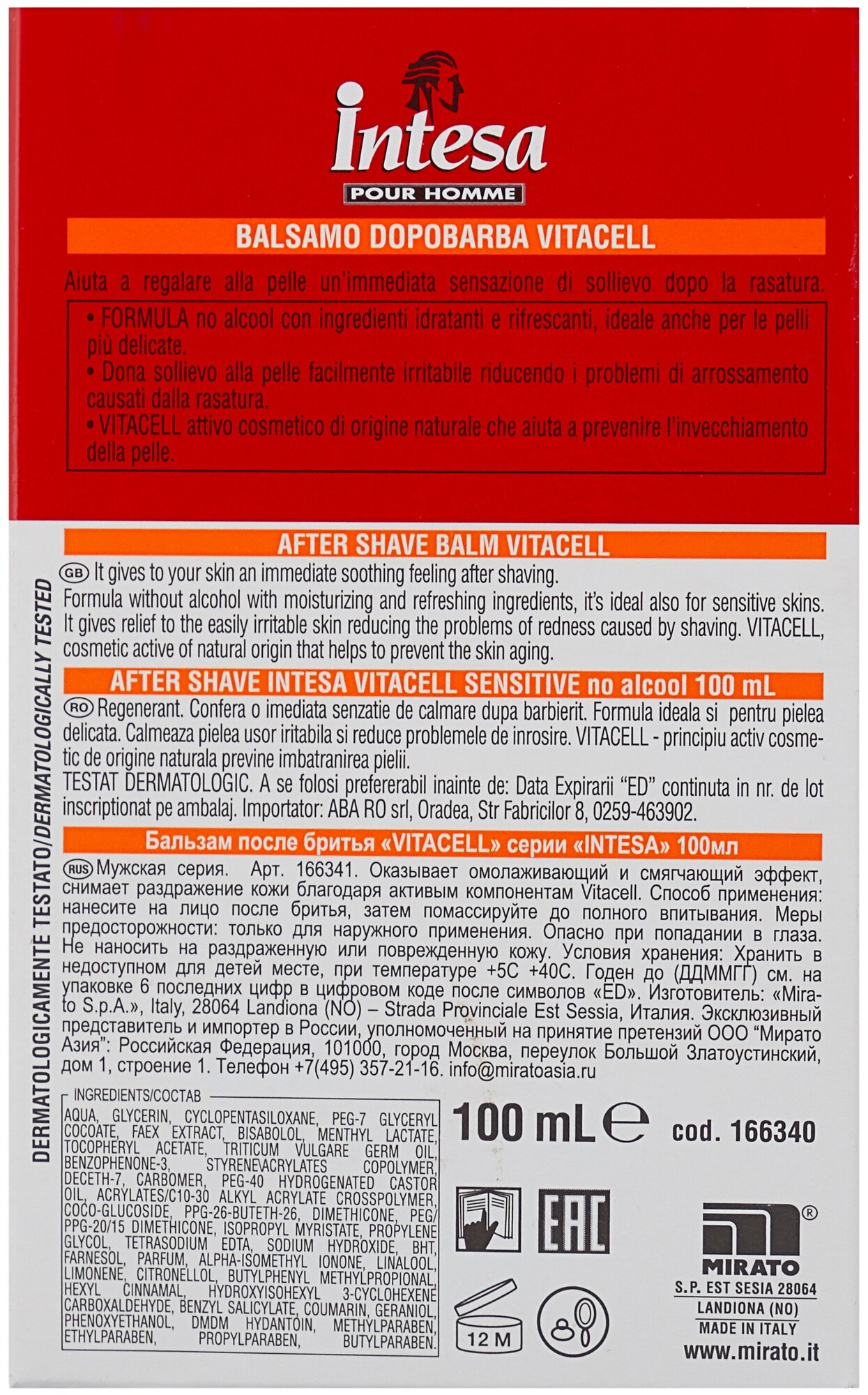 Бальзам после бритья Intesa Vitacell 100мл Для чувствительной кожи