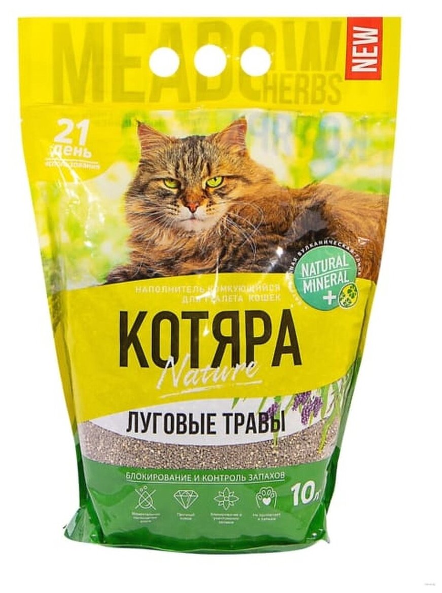 - Наполнитель для лотка КОТЯРА Луговые травы, комкующийся кошачий наполнитель, для туалета кошек.