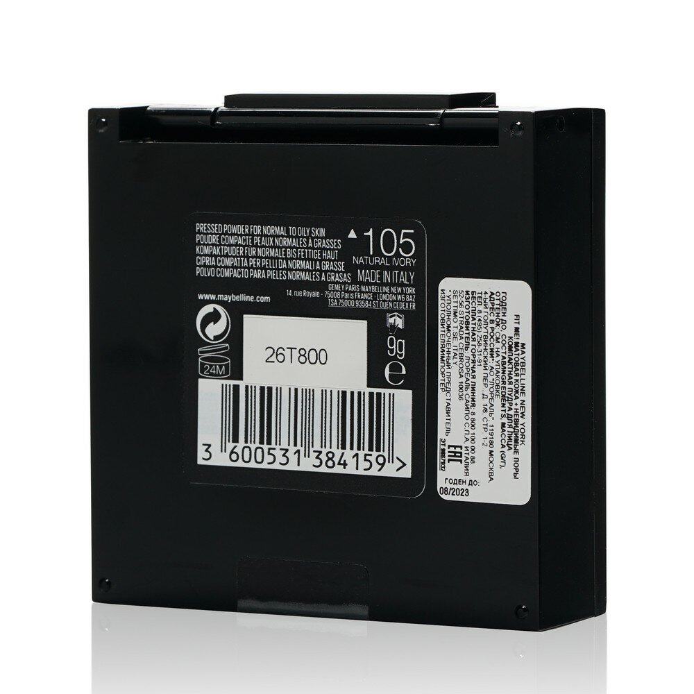 | Полное наименование | Maybelline New York Пудра для лица Fit Me, матирующая, скрывающая поры, оттенок 105, Натурально-бежевый, 9 г |