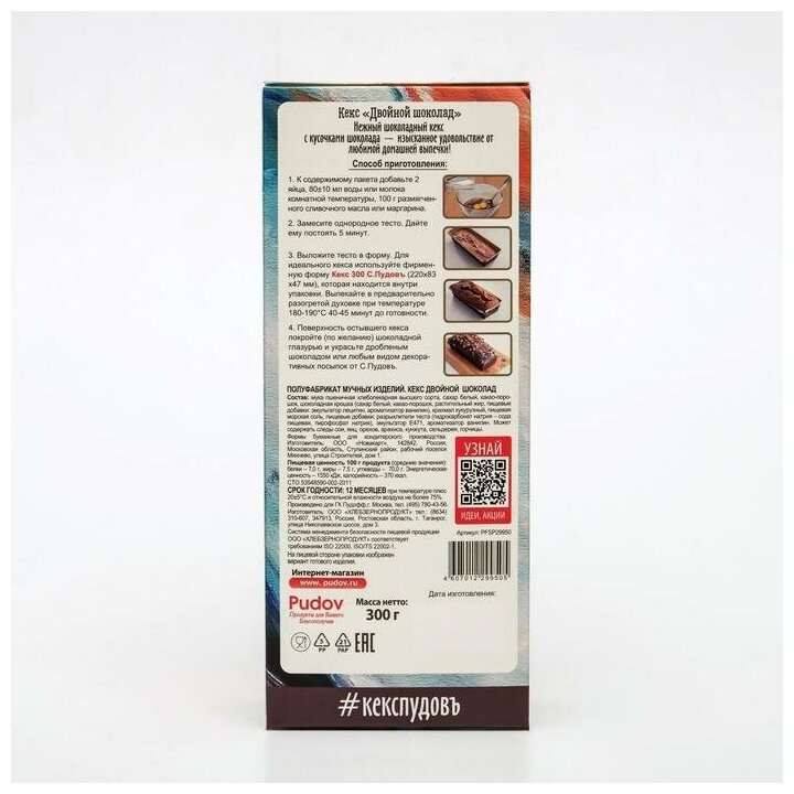 Сервис сравнения цен СкидкаГИД предлагает сравнить цены на товар «Смесь для выпечки С.Пудовъ Кекс двойной шоколад 300г»